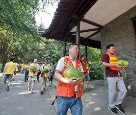 “这个西瓜怎么卖?”一位大妈拿着西瓜,好奇地问摊主。